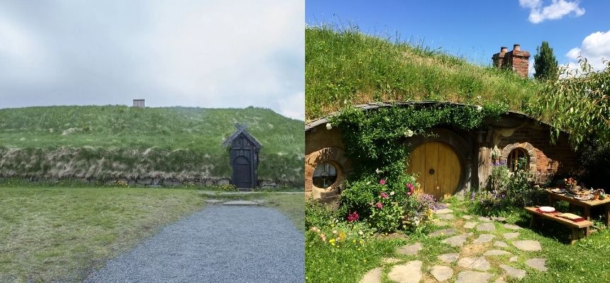 Apesar de se tratar de um mundo completamente novo, a Terra Média de Tolkien respira elementos estéticos e mitológicos Vikings. Exemplo mais claro desse contato é colocar a casa de um Hobbit do lado de uma casa nórdica antiga. É sério! Veja: