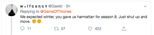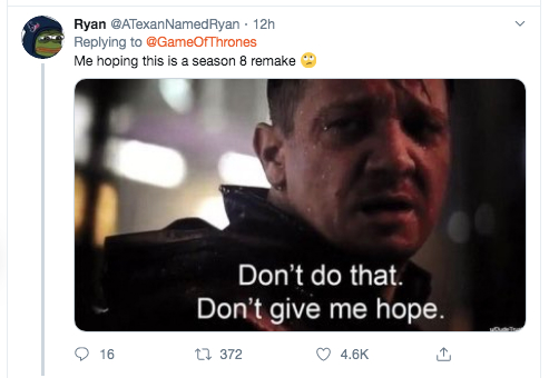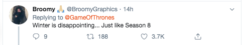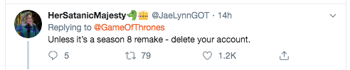 Alguns seguidores pediram e até exigirão o remake da última temporada, enquanto outros apenas expressaram a insatisfação com os episódios finais. Um perfil escreveu: “O inverno é decepcionante… Assim como a oitava temporada”.