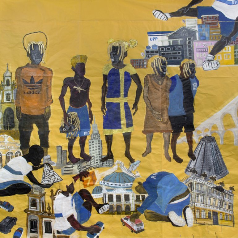 A capa do disco do rapper de Jacarepaguá, da Zona Oeste do Rio de Janeiro, funciona como um cartão de visita pintado pelo artista Maxwell Alexandre. A imagem materializa os personagens de Gigantes. Com rimas sobre a hipersexualização, a criminalidade, o preconceito, a solidão do homem e da mulher negra, BK’ anunciou que os Gigantes estavam a caminho.