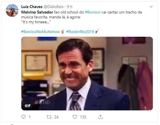 Depois, quando questionado sobre a música favorita do Bon Jovi, headliner da noite, quis cantar “It’s My Life”, mas saiu um “It’s My Timeeeee”.