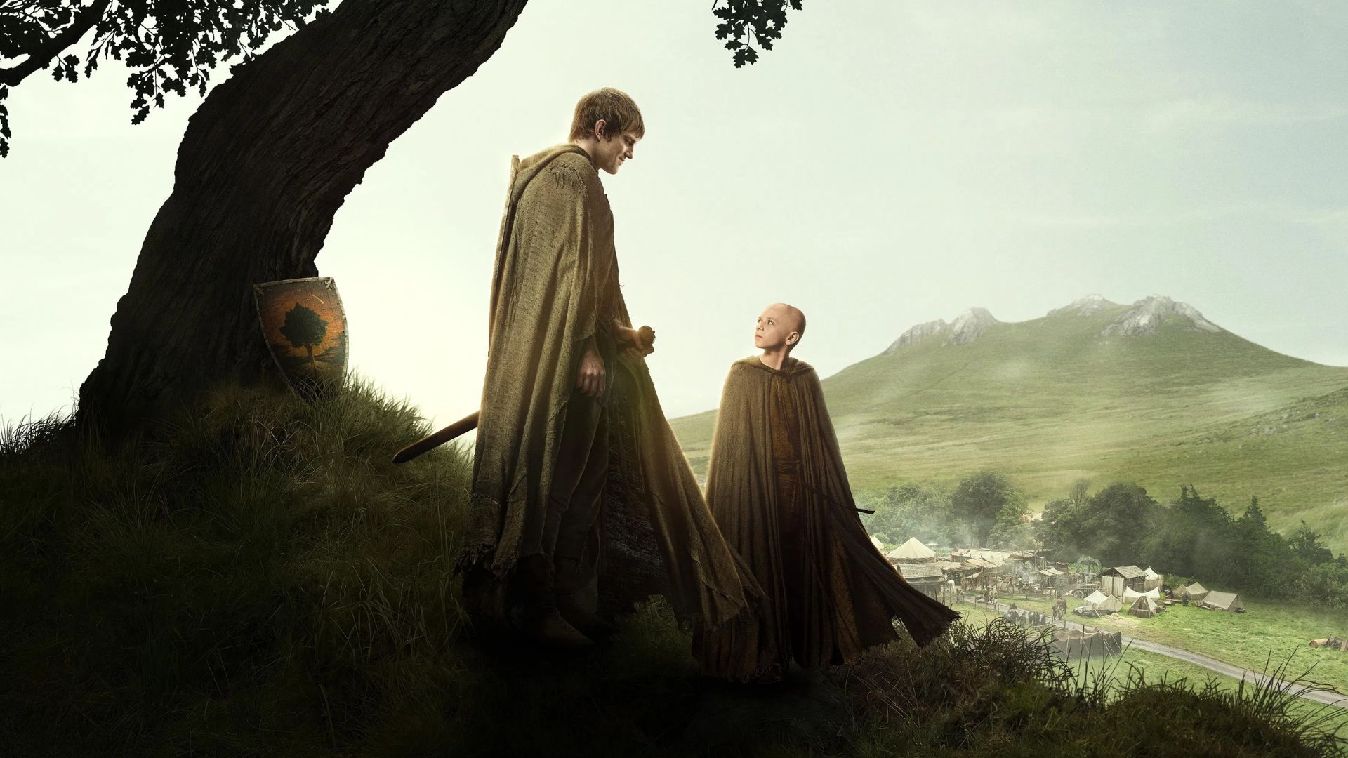 Isso não significa que a dupla não tenha importância na história maior. A trama se passa cerca de um século antes dos eventos da série original, e quando Dunk (vivido por Peter Claffey) inventa na hora seu título — Sor Duncan, o Alto — talvez você se lembre de ter ouvido esse nome algumas vezes em Game of Thrones. Ele acabará se tornando um nome importante na Guarda Real. Quanto a Egg (Dexter Sol Ansell), o “menino do estábulo” careca que Dunk conhece ao chegar a Ashford e que se torna seu escudeiro? Vale notar que seu apelido não vem da cabeça raspada, mas de seu verdadeiro nome — que soará extremamente familiar quando for revelado, na metade da temporada.