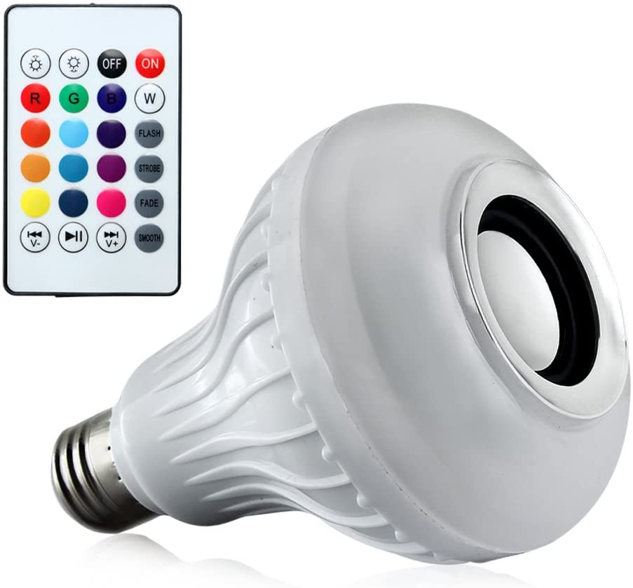 Lâmpada de 12W com alto falante blueooth para você transformar o ambiente em uma festa. Ele acompanha um controle remoto com 24 funções e 16 cores para você customizar sua experiência, além de que a conexão bluetooth permite que você toque suas músicas favoritas.